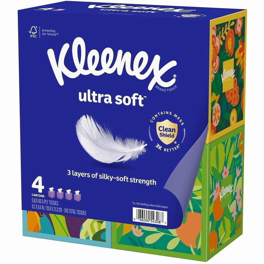 | Marketing Information | Kleenex Ultra Soft Tissues offer dependable strength combined with ultimate softness. Three-ply tissues are soft, strong and fragrance-free. Tissue boxes come in a variety of colors and designs that complement your home, office or business decor. |